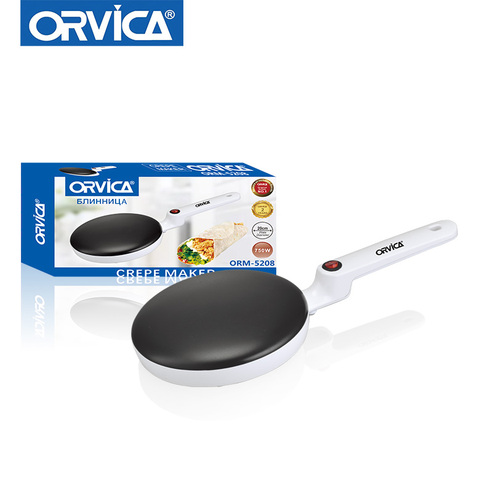 ORVICA, venta al por mayor, uso doméstico, 220V, revestimiento antiadherente, placa caliente, eléctrica, automática, de mano, fabricante de crepes